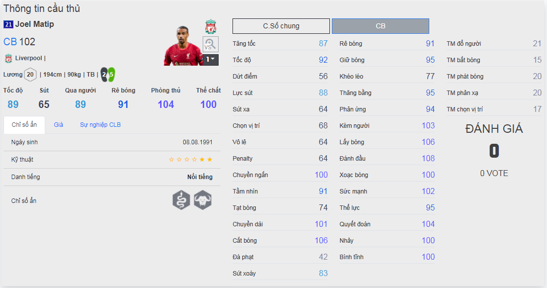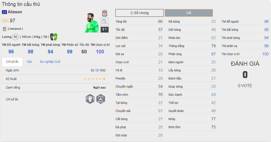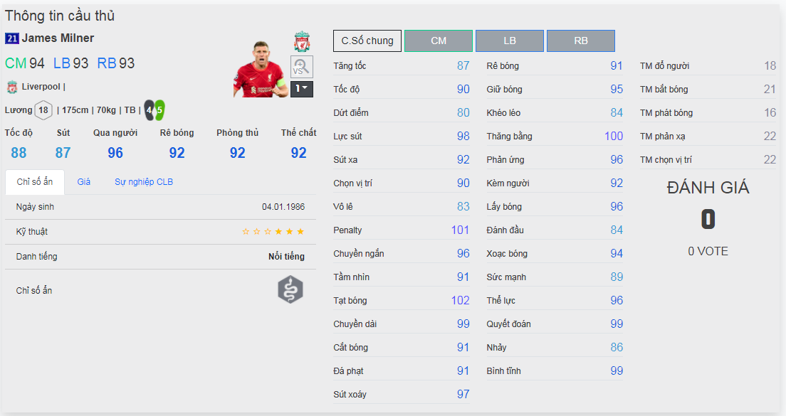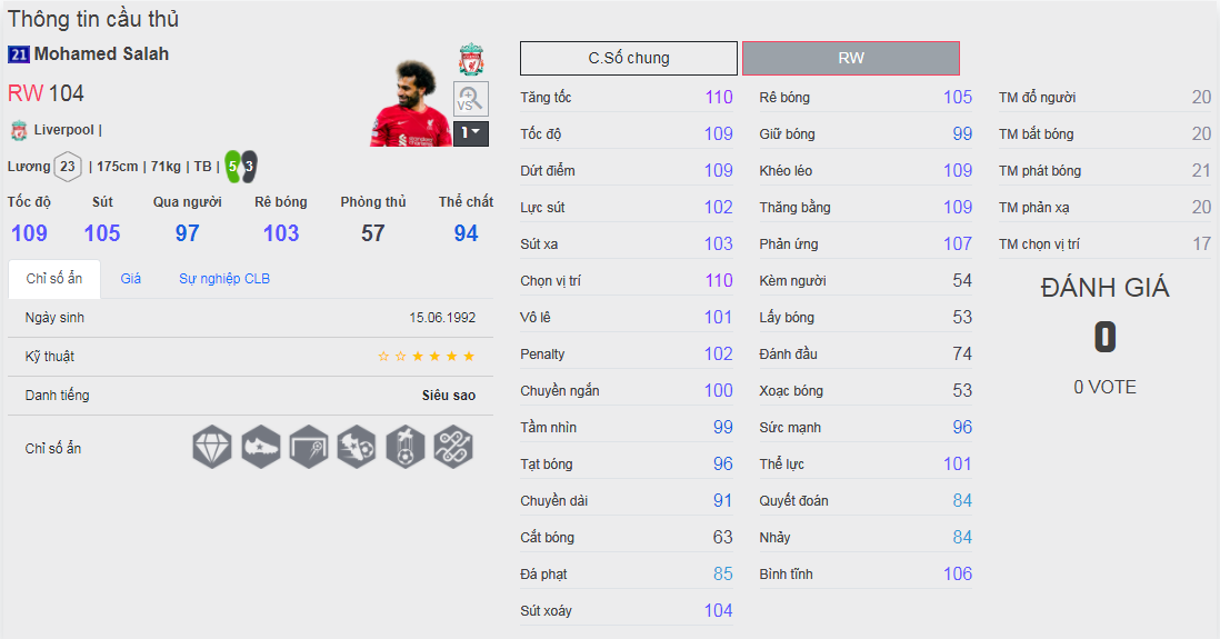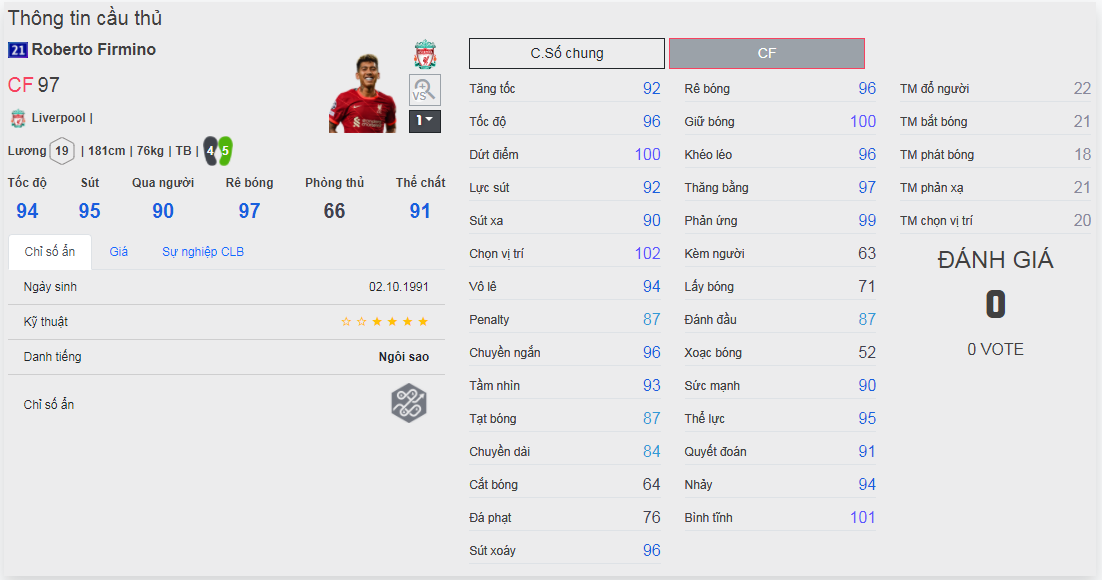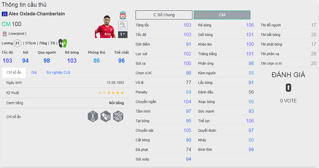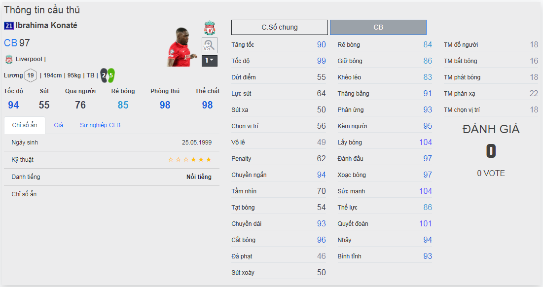 Chú ý : phần thể hình của cầu thủ chưa được chuẩn xác lắm, nên các bạn xem chỉ số để tham khảo