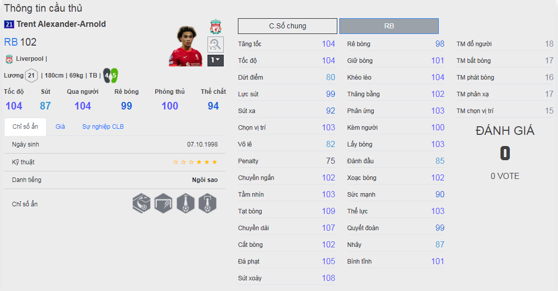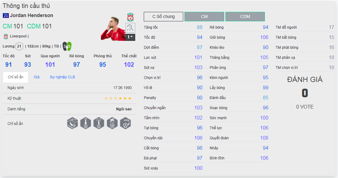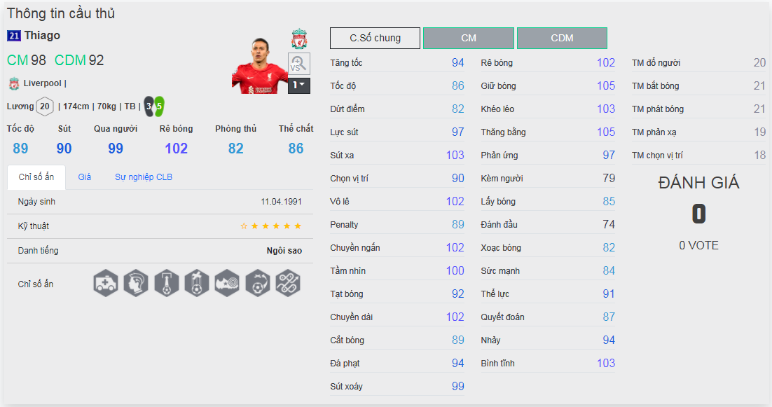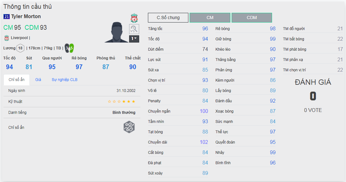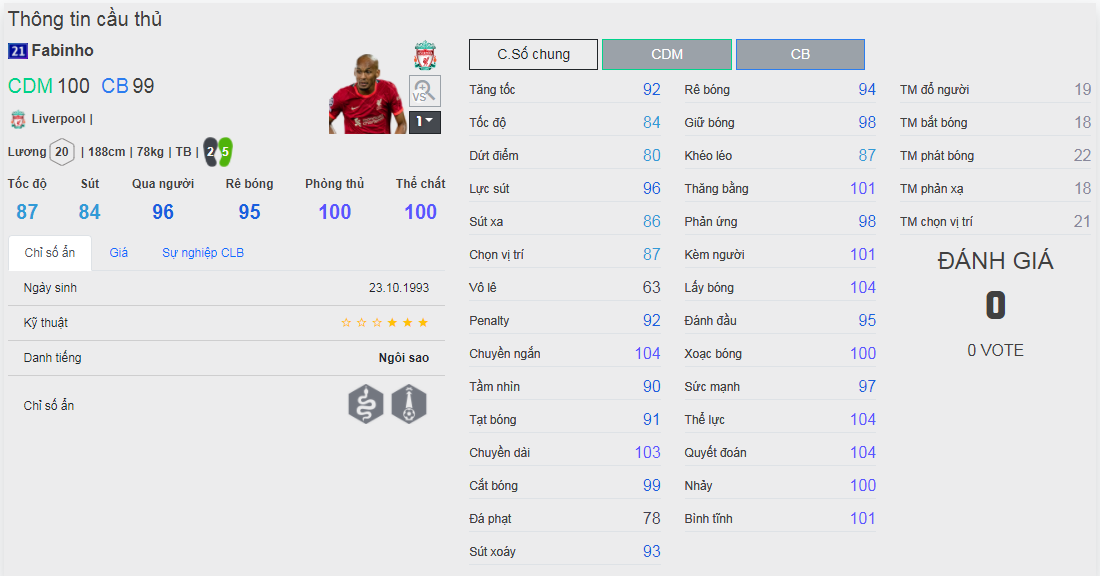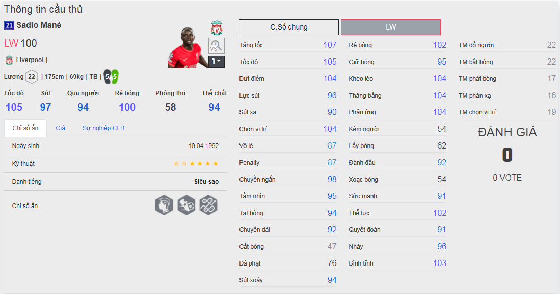 Chú ý : phần thể hình của cầu thủ chưa được chuẩn xác lắm, nên các bạn xem chỉ số để tham khảo