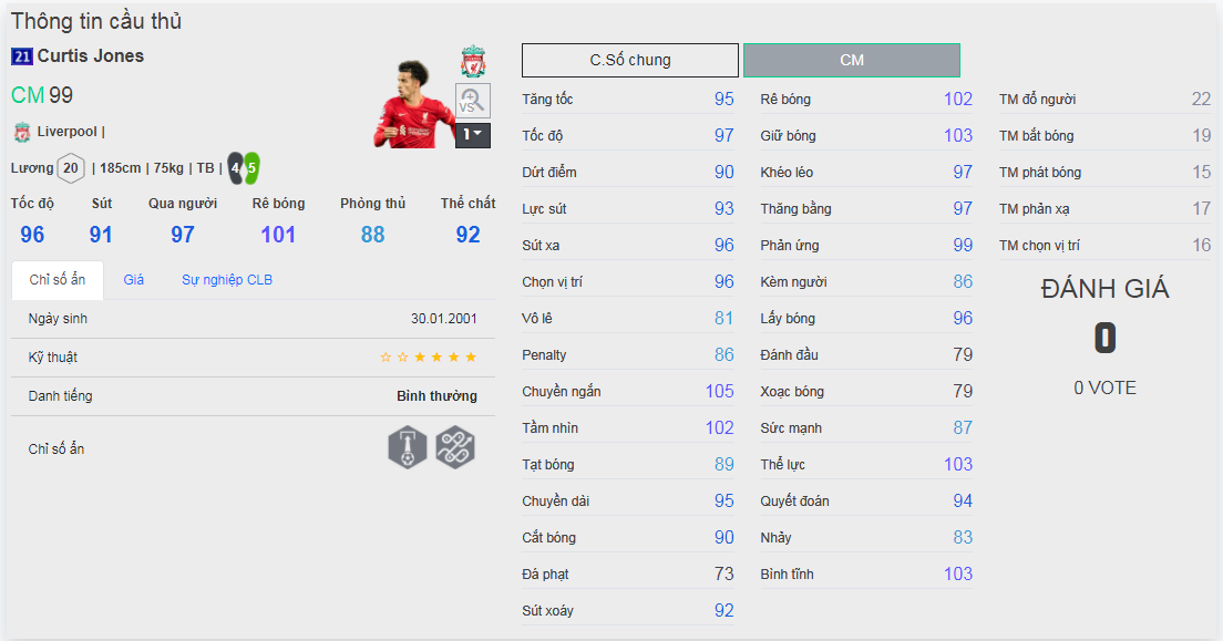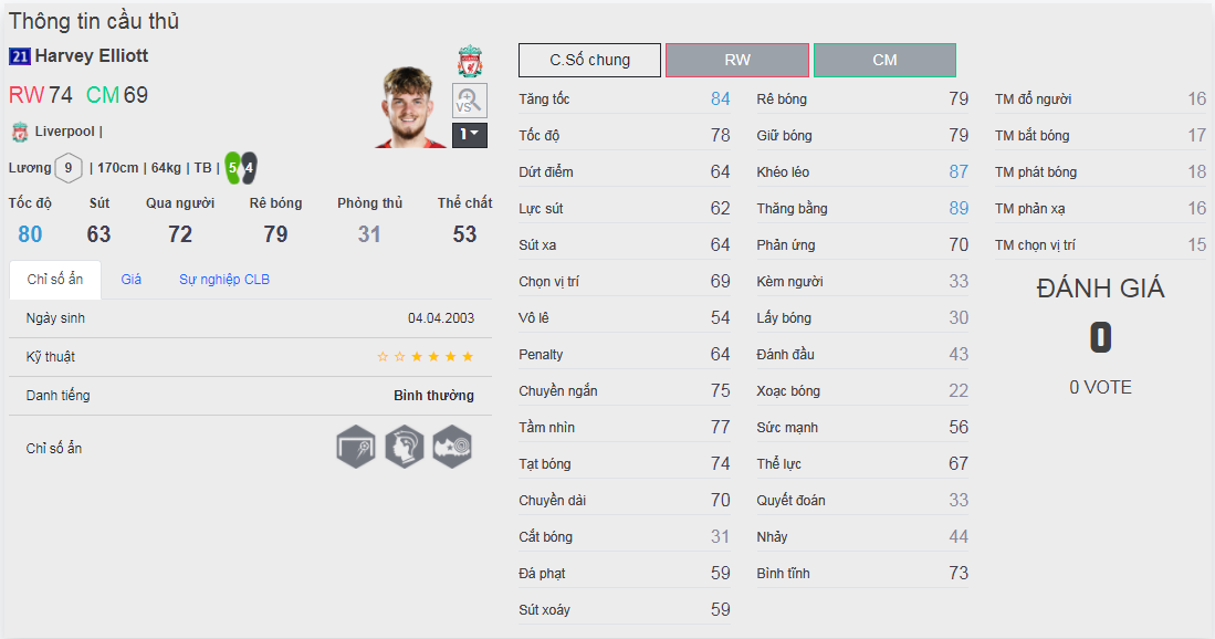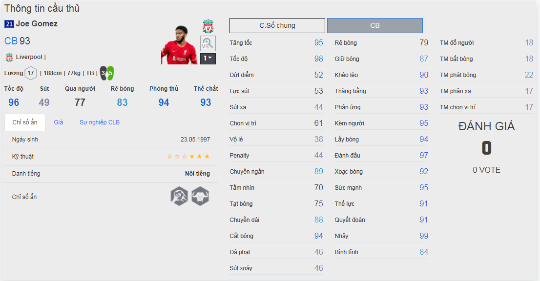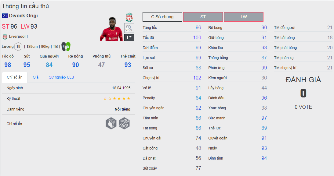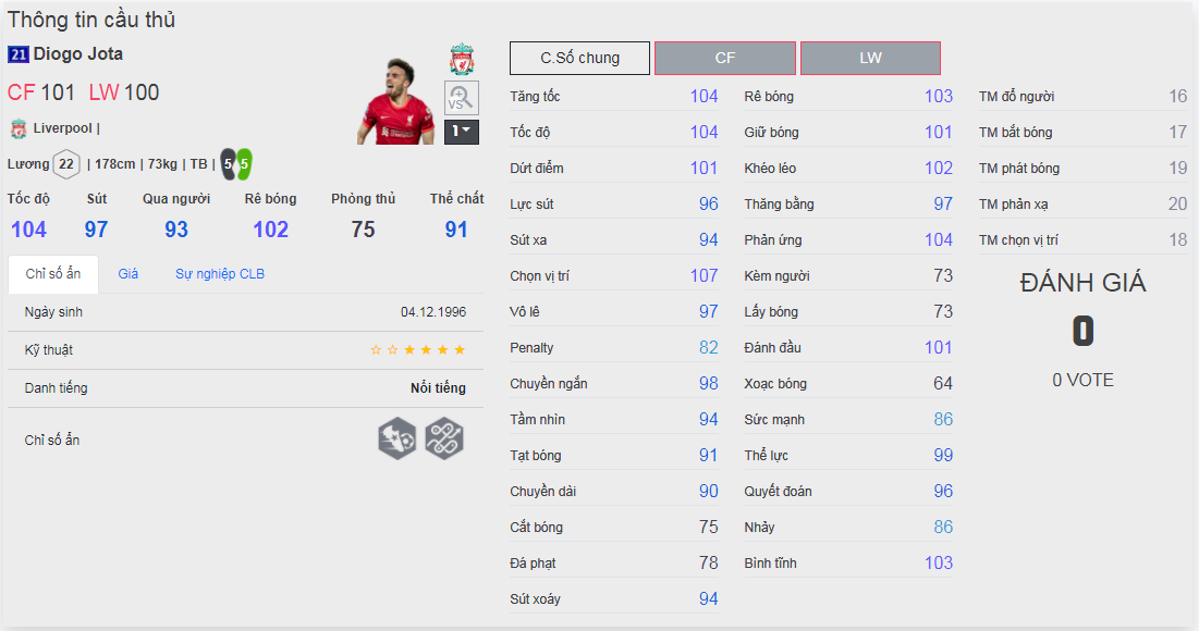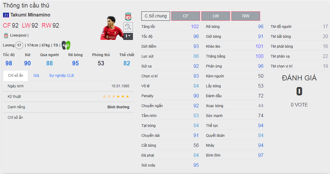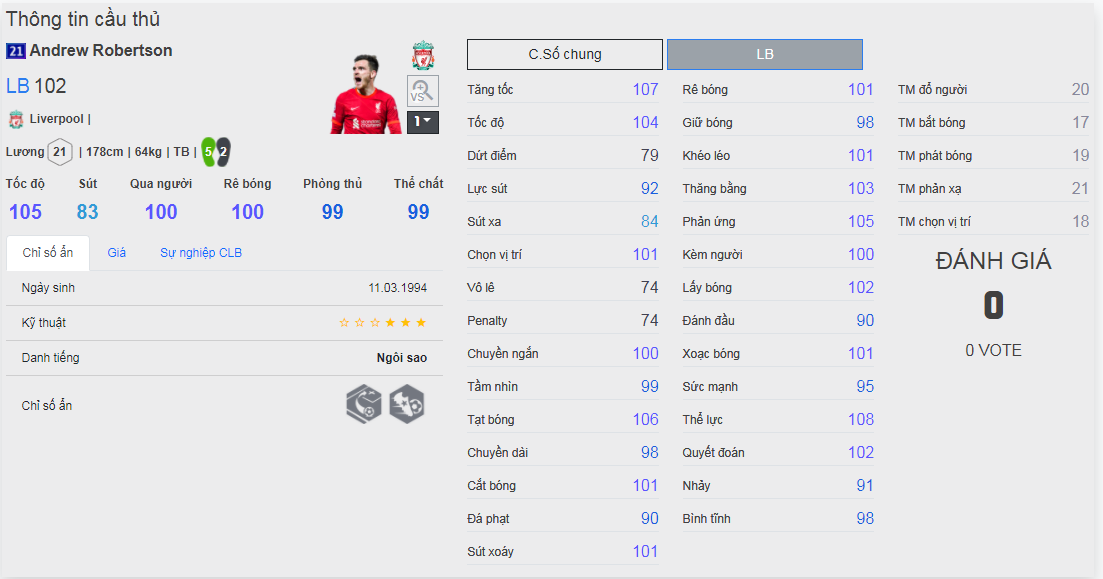 Chú ý : phần thể hình của cầu thủ chưa được chuẩn xác lắm, nên các bạn xem chỉ số để tham khảo