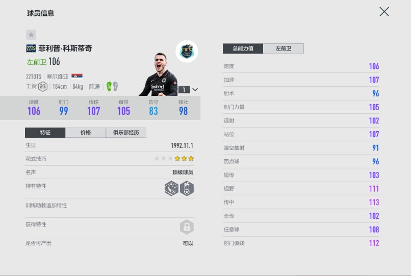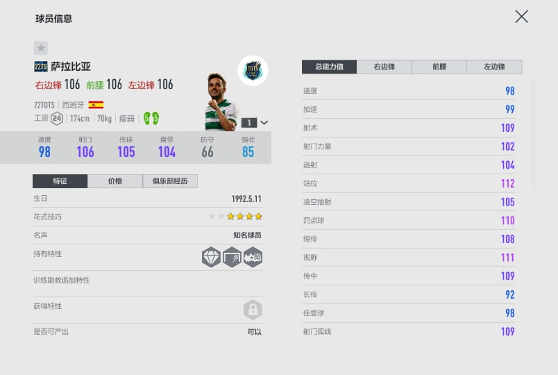 Chi tiết chỉ số mùa 22TOTS FIFA Online 4 cho anh em tra cứu