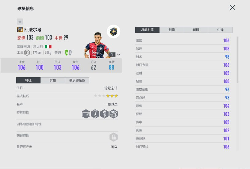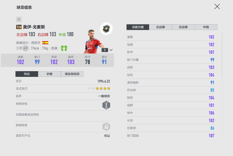 Dưới đây là những thông số cầu thủ mùa giải này mà các bạn có thể tham khảo.