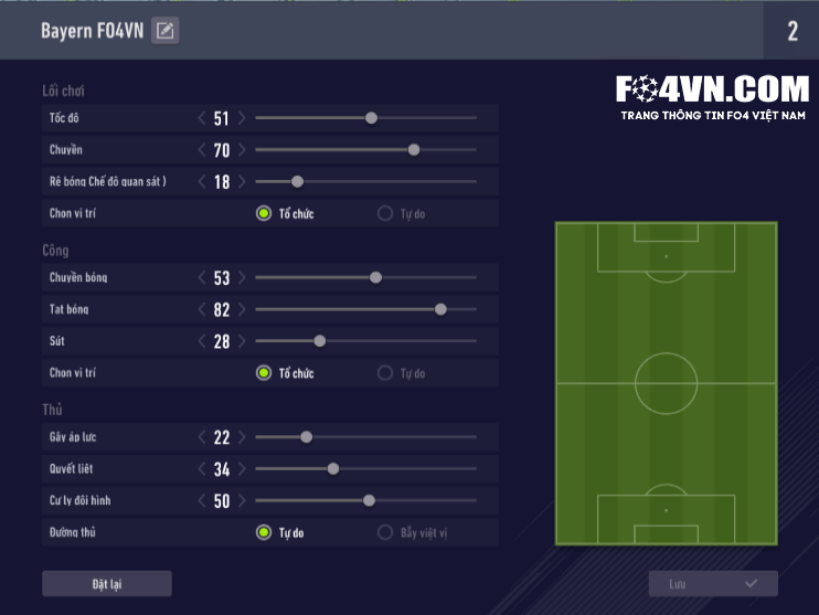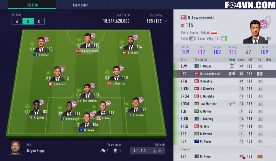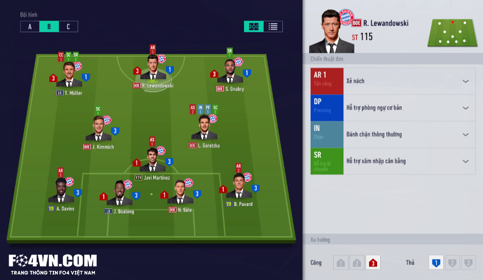 Đa phần người chơi sẽ xây dựng đội hình Hùm xám Bavaria với sơ đồ 4-2-3-1, sơ đồ ưa thích của Bayern ngoài đời và đem lại hiệu quả rất cao. Tuy nhiên hôm nay FO4VN sẽ mang đến cho các bạn một cách xây dựng khác cho Bayern với sơ đồ 4-1-2-3.