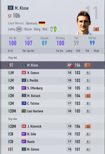 - Có lẽ nhiều bạn sẽ thắc mắc việc tôi xếp Muller ở cánh trái. Tôi thích đặt Muller ở cánh trái để tận dụng những pha xâm nhập vào trong của anh và tung ra những cú ZD rất hiểm hóc. Với xu hướng CC1, SC1 và SR1, Muller luôn có xu hướng di chuyển tìm khoảng trống sau đó xâm nhập vào trung lộ khôn khéo khiến tôi rất bất ngờ.