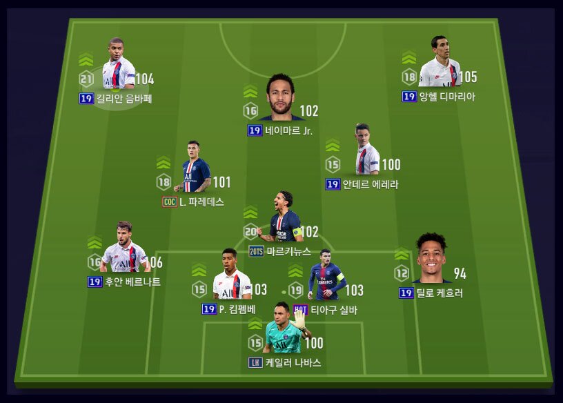Đội hình này sẽ không có sự phục vụ của Verratti, bởi trong chiến dịch C1 năm ngoái anh gặp chấn thương và hầu như vắng mặt ở những trận đấu quan trọng của PSG. Tất nhiên hãy để anh ấy trên băng ghế dự bị, hoặc tùy biến sử dụng theo ý bạn.