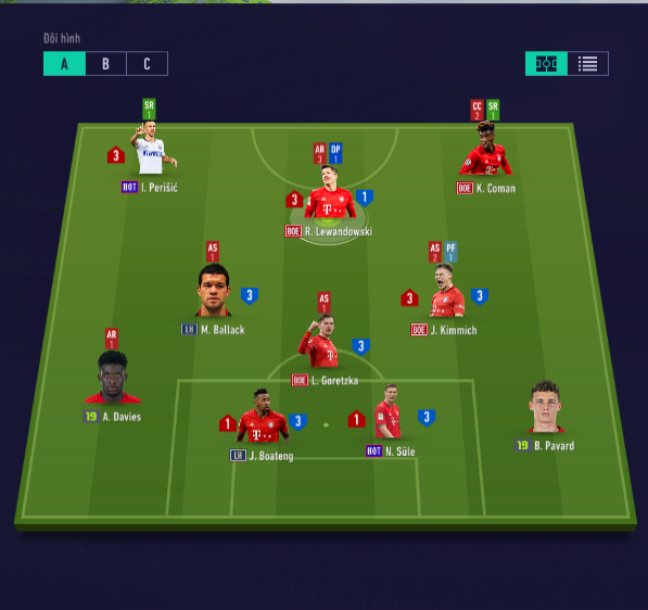 Lưu ý: Muốn chơi được đội hình này cần phải bình tĩnh, có khả năng phòng ngự tốt, tận dụng đan xen những pha chuyền dài và ban bật.