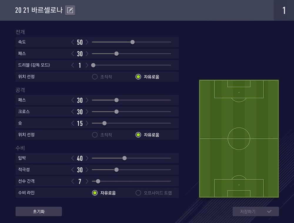 Thiết lập tự do và áp lực cũng như cự ly đội hình cực thấp, sẽ giúp đội bóng của bạn chơi chậm ở sân nhà, ít dâng cao. Và cực ly cầu thủ cực gần, giúp cho những đường đan bóng được thực hiện dễ dàng hơn