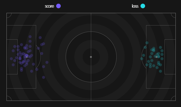 ✔ Cự ly ghi bàn trung bình 15,4m