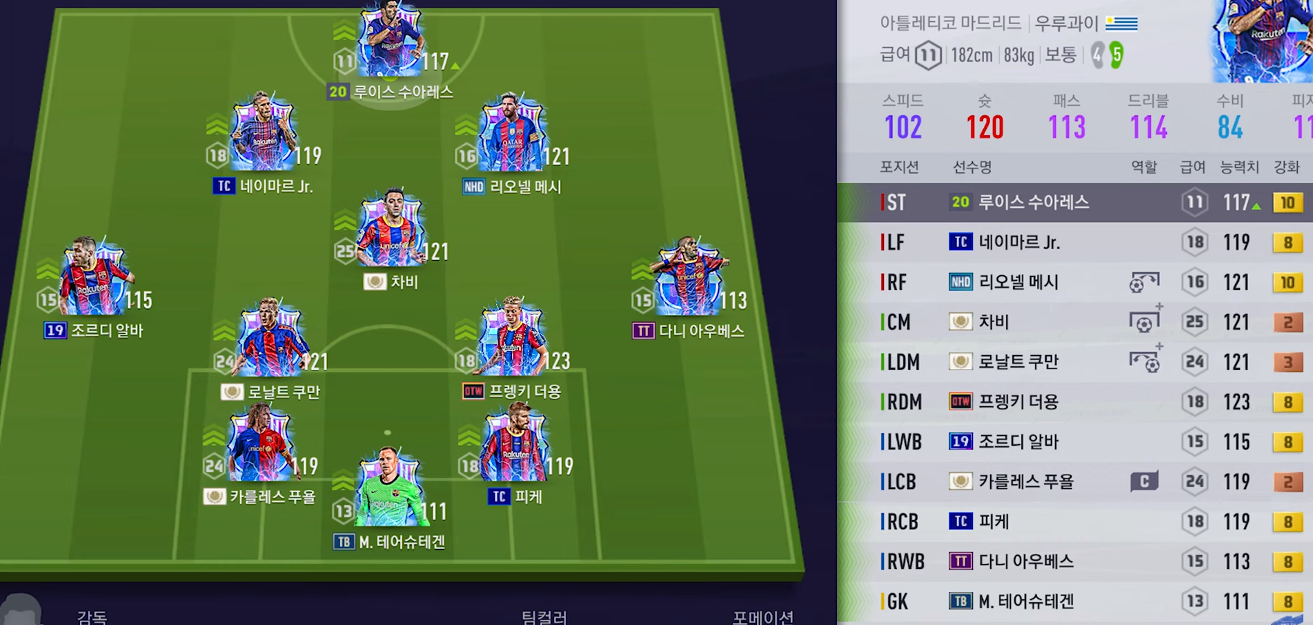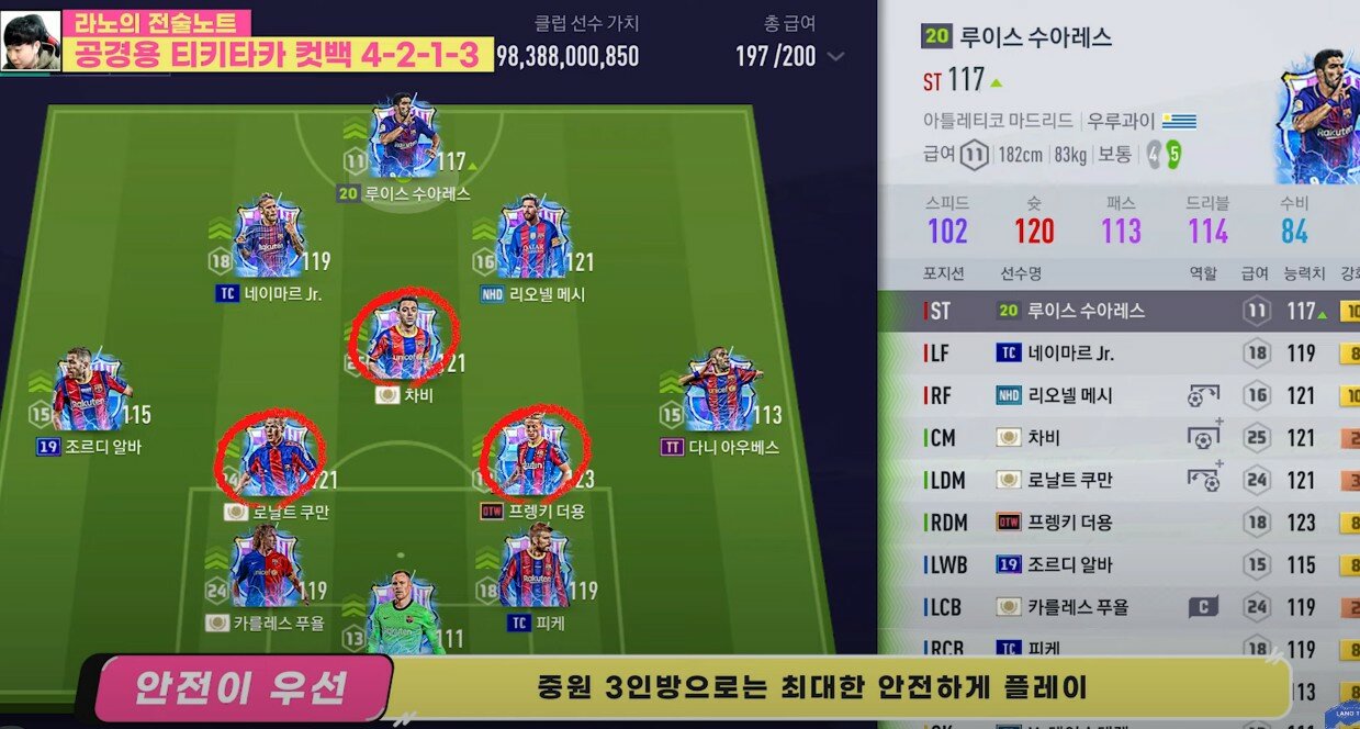 Bộ ba tiền vệ giữa sân sử dụng tới hai cái tên mùa giải ICON. Và không có sự tham gia của Busquet, tiền vệ người Tây Ban Nha có chiều cao tốt nhưng khá ì trong di chuyển, trong khi ba cái tên khoanh tròn phía trên lại đảm bảo đội hình được di động liên tục, điều cốt yếu khi vận dụng tiki-taka.