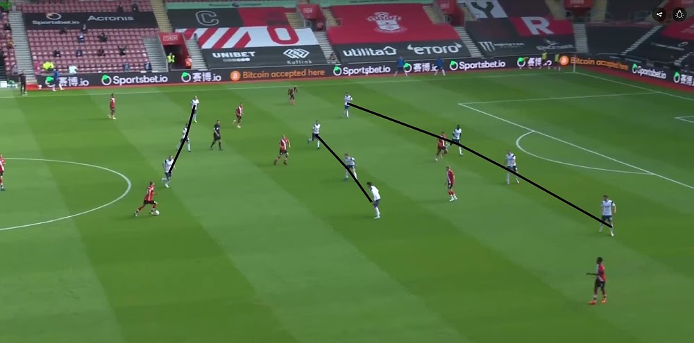 Sự thay đổi này, đã khiến cho các cầu thủ SOU gặp bố rối một cách thực sự, họ đã gần như bị phá sản trong lối chơi, khi liên tiếp để cho H. Son ghi liên tiếp 3 bàn thắng. Kane được kéo xuống chơi lùi lại phía sau 2 người đồng đội của mình, và đảm nhận vai trò kiến tạo cho H. Son trong một ngày thăng hoa.