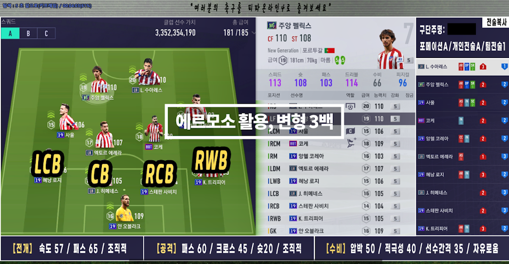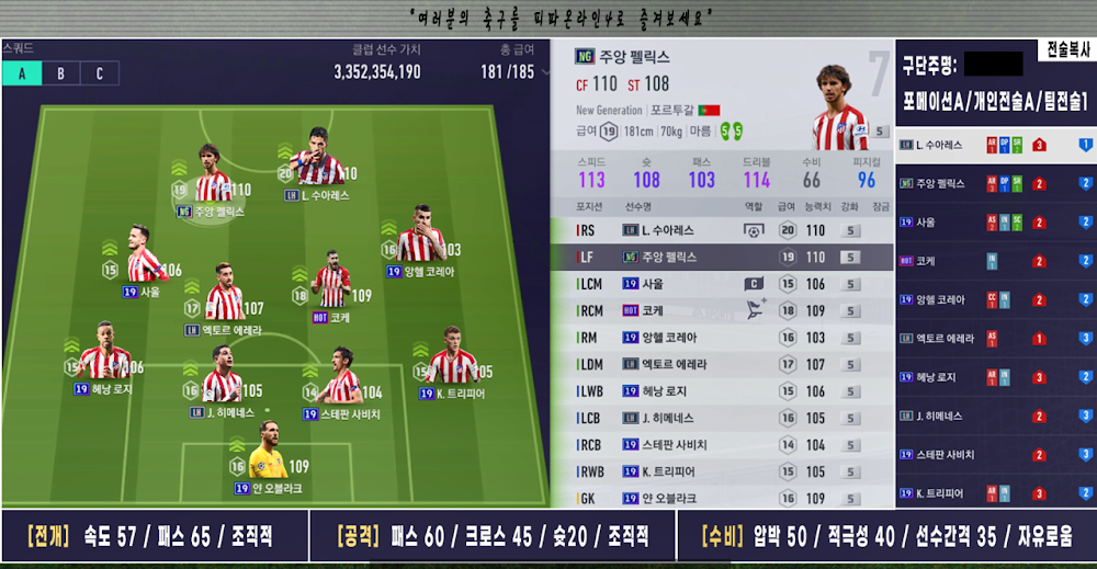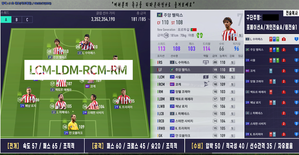 Đầu tiên là Suarez. Chắc chắn đây là tiền đạo tốt nhất trong game hiện nay của ATM. Về cả thể hình lẫn độ nhạy trong các tình huống. Với việc Felix được kéo chơi lùi phía sau và lệch về bên trái với vai trò kiến thiết lối chơi. Thì Suarez có nhiều không gian ở hành lang phải và thuận lợi cho việc "xâm nhập từ phía sau".