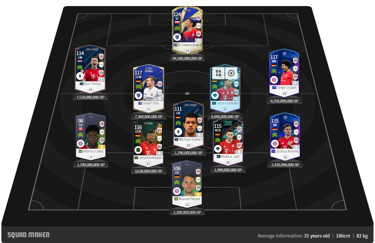 Có thể dễ dàng nhận ra HLV này sử dụng đội hình của team Bayern Munich với sự bổ sung chất lượng từ mùa giải Unsung. hai cái tên là Groretzka và Sule. Cả hai cái tên đều thuộc hàng top sử dụng hiện nay. Đáng chú ý là Tony Kroos cũng xuất hiện trong đội hình. Trong quá khứ thì Kroos từng cùng Bayern đăng quang C1 vào năm 2013.