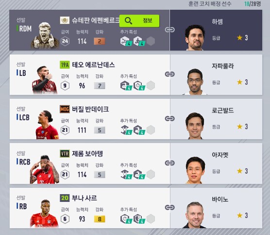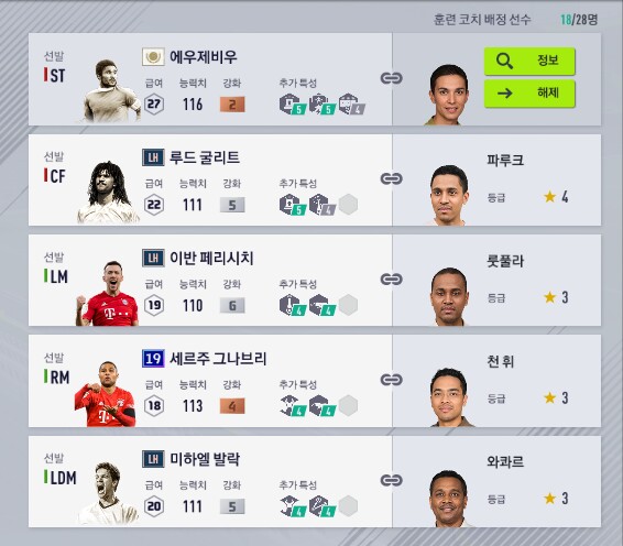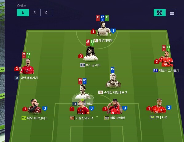 Dàn HLV kỹ năng của đội hình này. Có thể dễ dàng nhận ra hai vị trí CF và ST đều sử dụng skill "nhạy bén"