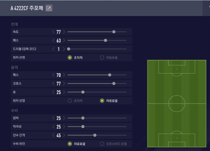 4222 này sử dụng một ST và CF. Trong đó vai trò của cầu thủ ở vị trí CF rất quan trọng. Như hình chúng ta đã thấy HLV này sử dụng Gullit một cầu thủ toàn diện nhất game, từ dứt điểm cho đến chuyền chọc. Đặc biệt ưu tiên những cầu thủ có kỹ năng ZD tốt. Bởi khoảng không để tung ra cú sút là cực rộng.