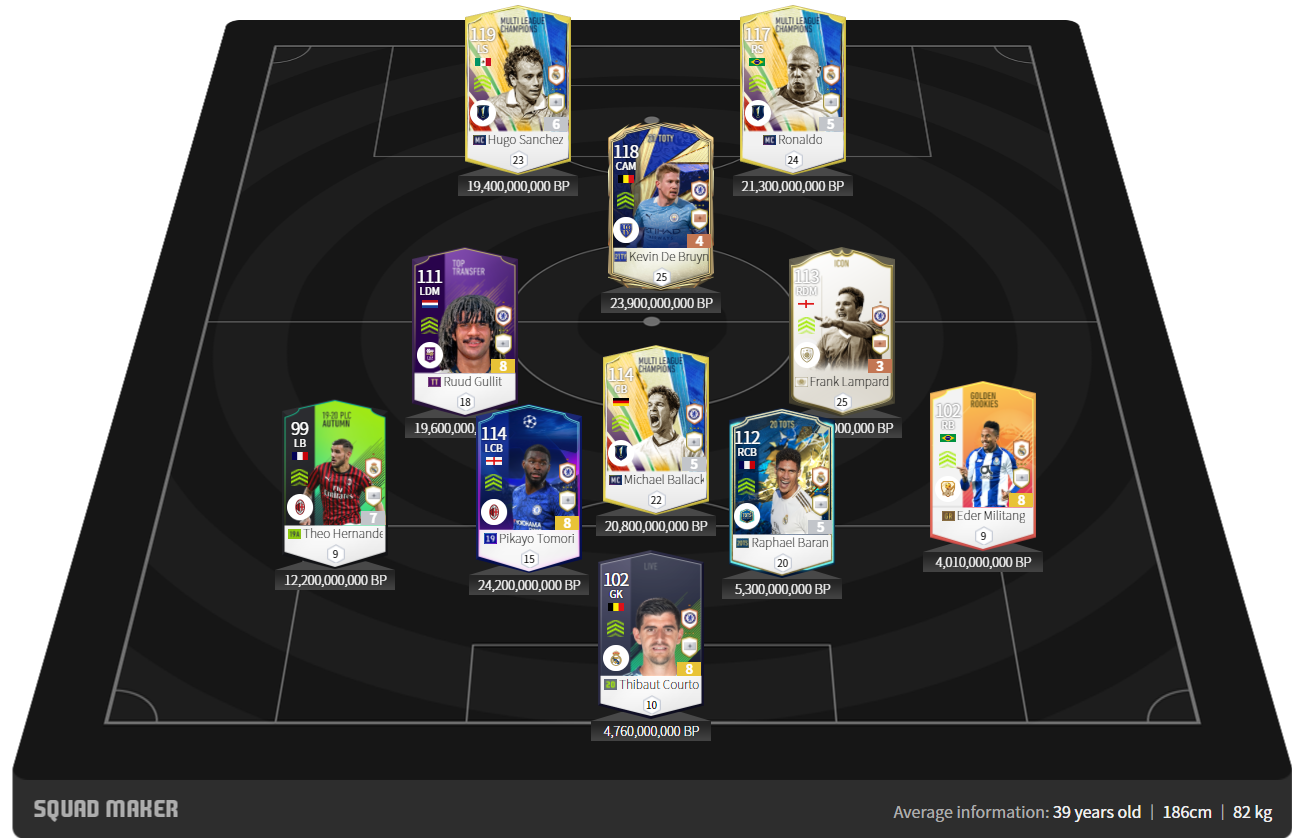 Đội hình với sự kết hợp của Chelsea và Real mang lại sự cân bằng tronng phòng thủ và tấn công khi tận dụng được cặp đôi Gullit và Ballack