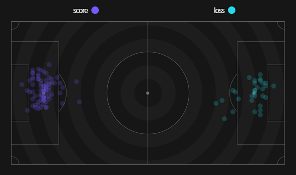 ✔ Cự ly ghi bàn hiệu quả 14,8m