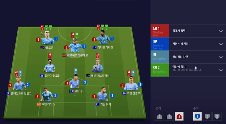 Đừng vội vạ căng ngang bóng vòng trong trong trường hợp Aguero còn chạy phía sau hậu vệ đối phương, hãy cố gắng giữ bóng thật chắc và tạo ra cơ hội dứt điểm thực sự thoải mái. Bởi nếu bị phản công thì lúc đó sẽ rất khó khăn vì chỉ còn 3 cầu thủ của bạn ở nhà.