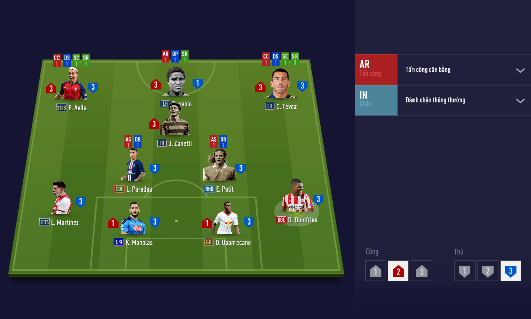 Sơ đồ được lựa chọn là 4213 với những cái tên đến từ mùa giải 21UCL. Riêng trường hợp Pogba, do mùa 21UCL của anh có chỉ số và chất lượng sử dụng quá thấp nên buộc phải dùng mùa giải cao cấp hơn là BTB.