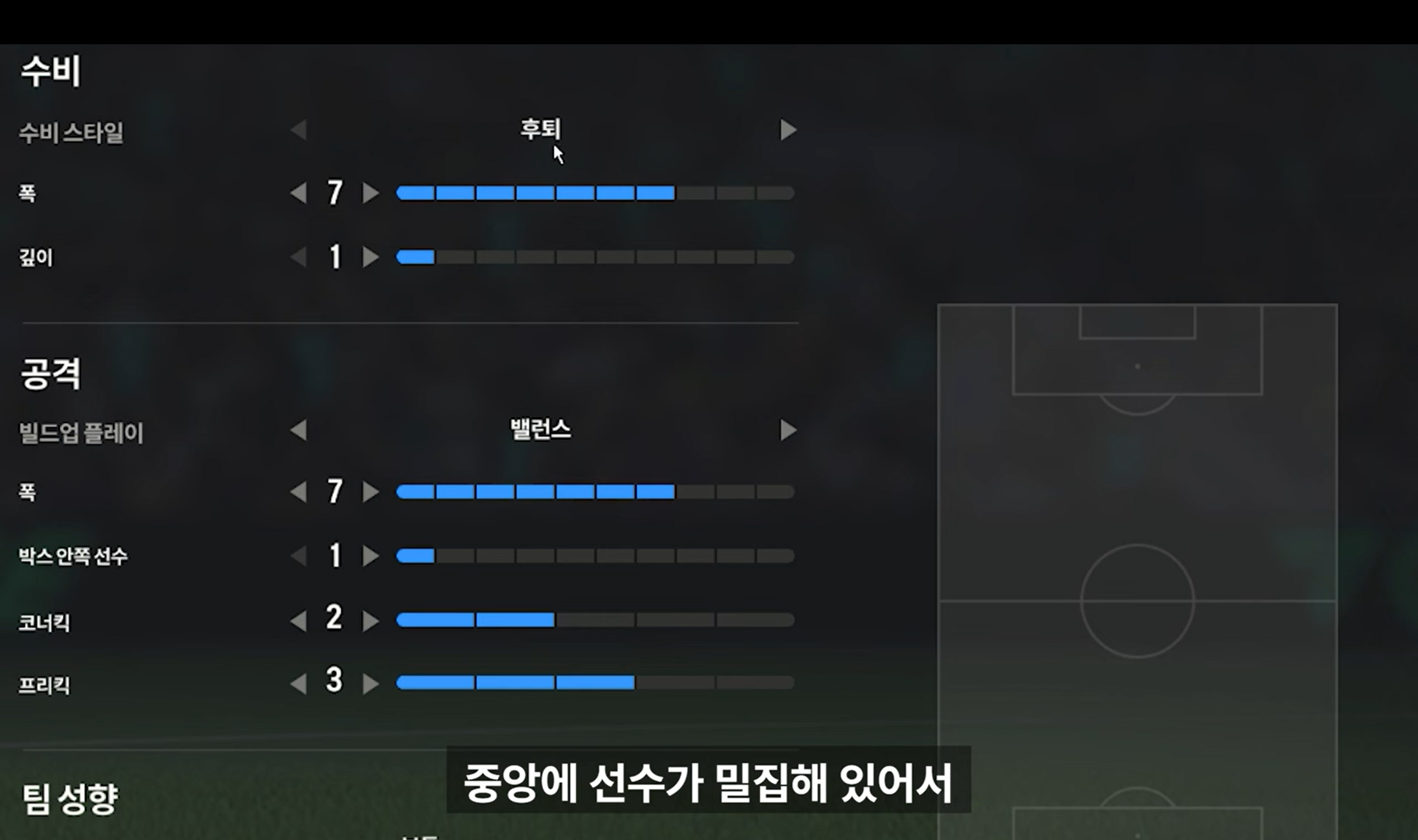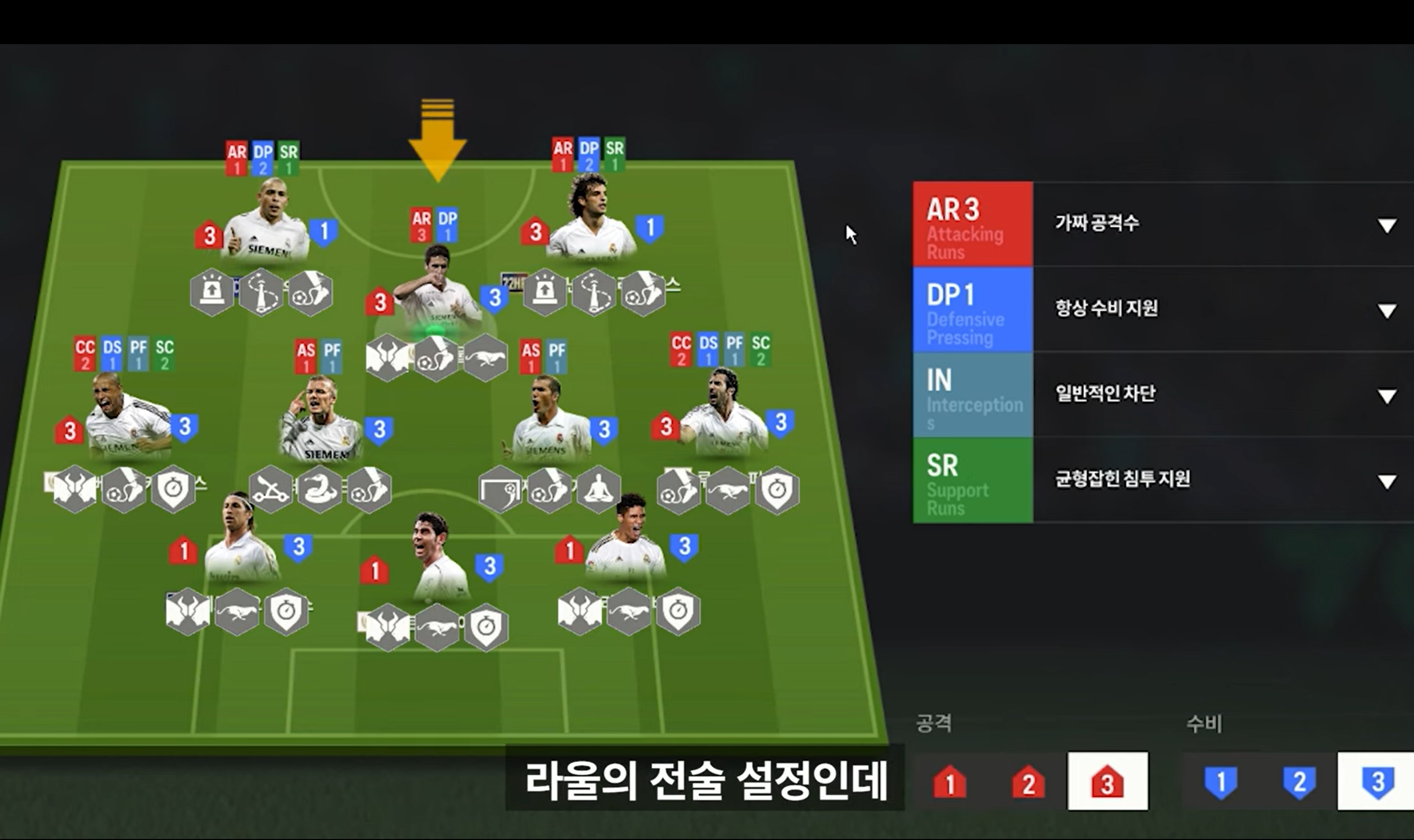 Cài đặt phòng ngự " Lui về" cùng với đó là để đội hình phòng ngự kéo thấp về khu vực sân nhà tạo lớp phòng ngự vững chắc cùng với đó giãn rộng đội hình để các cầu thủ hỗ trợ cả khu vực hành lang cánh nhằm bịt hết các đường tấn công của đối thủ.
