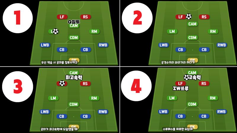 Sơ đồ chiến thuật 4-1-2-1-2 xây dựng bằng team color có nhiều những điểm nổi bật được một game thủ Top rank Hàn Quốc phát triển đem đến chất lượng cũng như độ hiệu quả rất cao trong rank xếp hạng với lối chơi xuyên phá hàng thủ đối phương một cách đa dạng và khó đoán.