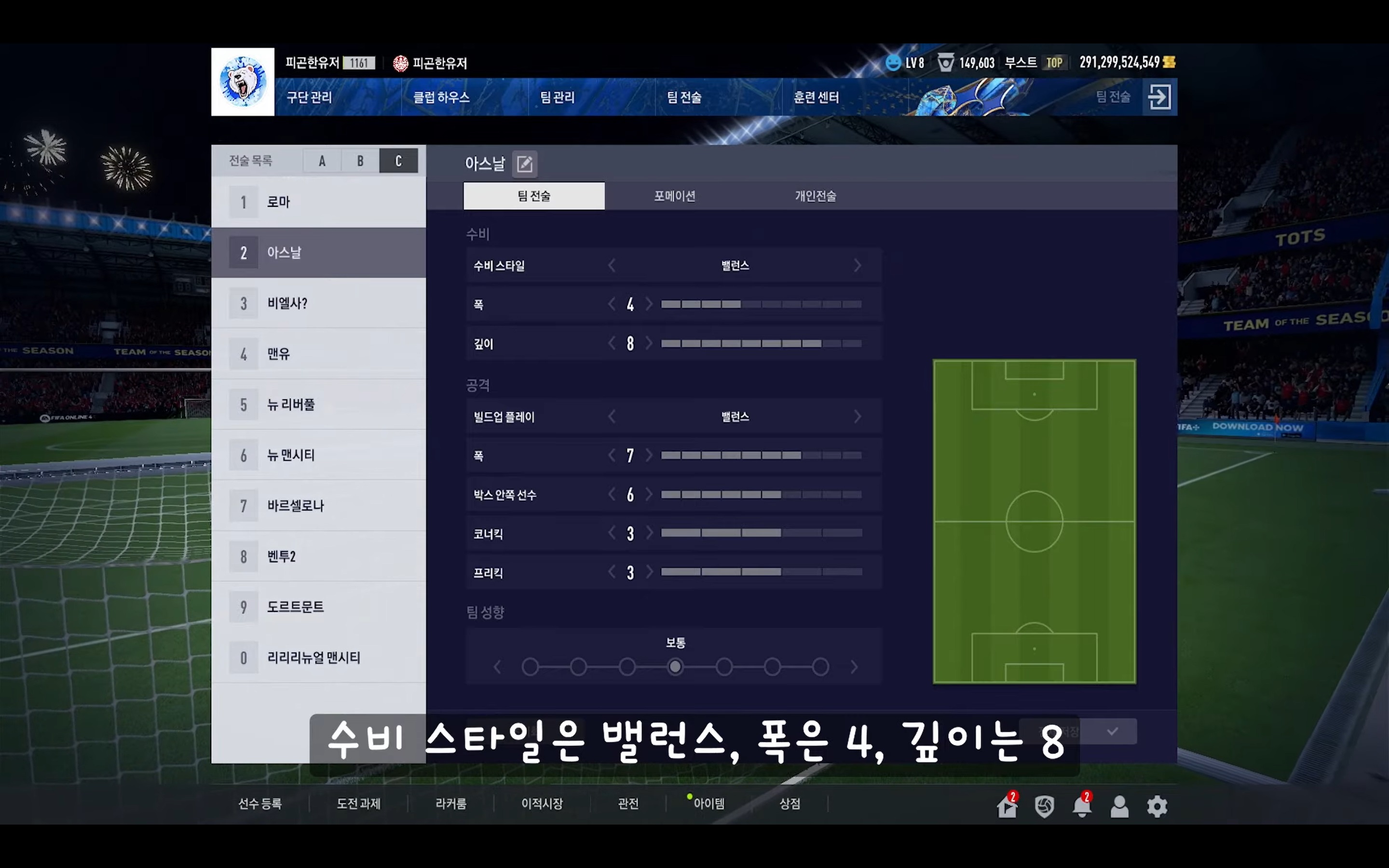 Lối chơi cân bằng ở cả tấn công lẫn phòng ngự tạo nên một thế trận triển khai kiểm soát bóng đúng chuẩn cách đá của Arsenal ngoài đời, không quá dồn dập mà kiểm soát khu vực trung tuyến, đẩy hàng phòng ngự của đối phương về sát khu vực 1/3 cuối sân. Đó là lí do tại sao đội hình dâng cao và khoảng cách giữa các cầu thủ ở mức trung bình trong các tình huống phòng ngự để ép đối phương từ phần sân đối thủ tránh cho họ kiểm soát thế trận ở khu vực giữa sân.