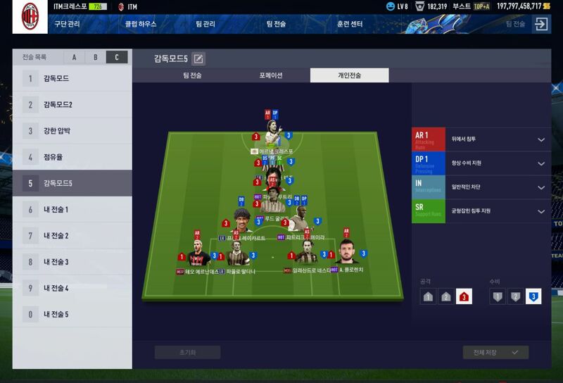 Có thể thấy chiến thuật cá nhân mà người chơi này lựa chọn cho các cầu thủ tiền vệ và tiền đạo chủ yếu là xu hướng 3-3 di chuyển công thủ toàn sân. Ngoài ra, chủ động pressing tắc bóng cũng được người chơi này đưa lên hàng đầu. Ngoài các cài đặt khác các bạn có thể tham khảo ở hình bên dưới.