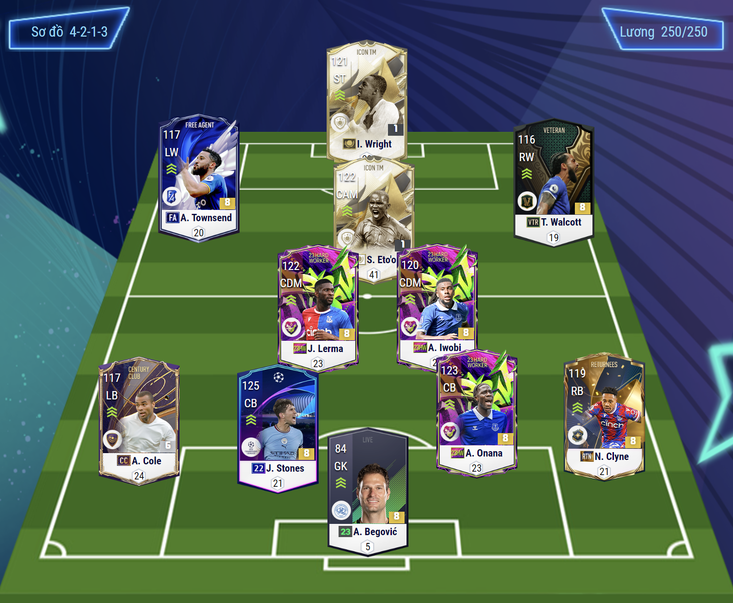 Sơ đồ chiến thuật 4-2-1-3 với đầu tàu tiền đạo cắm được Kim Yoo Min lựa chọn đó là Ian Wright với tốc độ tốt, khả năng di chuyển thông minh và khả năng dứt điểm rất tốt bằng cả 2 chân. Hỗ trợ phía dưới là Eto'o sẽ tạo nên bộ đôi song sát có tốc độ và khả năng nhạy bén bậc nhất game.