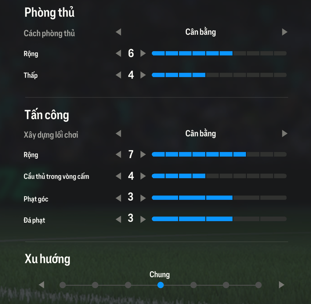 Lối chơi phòng ngự cân bằng cùng xu hướng rộng 6 thấp 4 sẽ tạo dựng một thế trận tấn công cân bằng, không lùi quá sâu mà chủ yếu sẽ phòng ngự khu vực và sử dụng con trỏ chuột để điều phối các cầu thủ phòng ngự một cách hiệu quả.