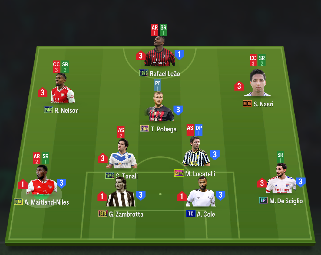 Chiến thuật đơn được thiết lập như hình bên dưới nhằm tối ưu từng vị trí thi đấu dựa theo đặc điểm và phong cách chơi bóng riêng.