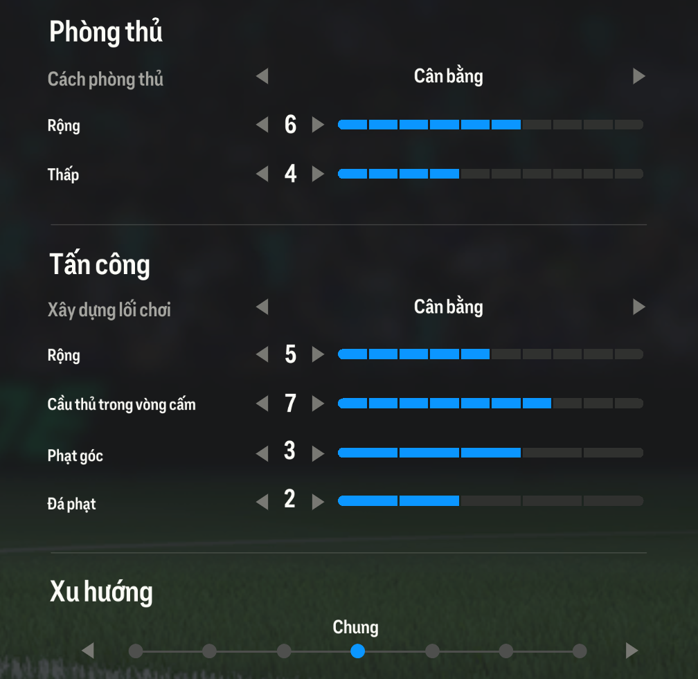 Chiến thuật đội được thiết lập cân bằng cả về khả năng tấn công lẫn phòng ngự. Với sơ đồ 4222, lôi chơi cân bằng sẽ là một lối chơi phù hợp cho các HLV khi triển khai thế trận cả về tấn công lẫn phòng ngự.