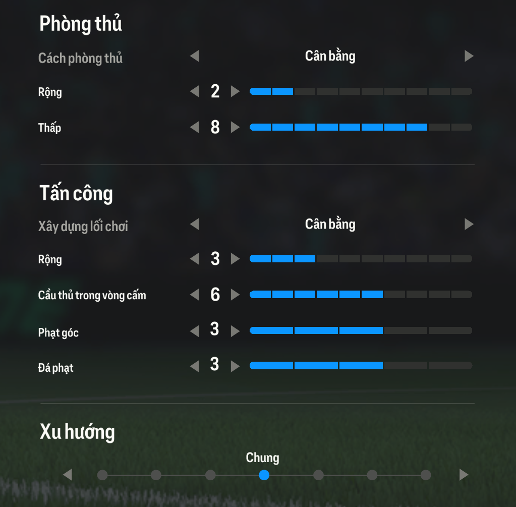Chiến thuật đơn của đội hình được thiết lập bên dưới, để người chơi có thể tối ưu khả năng tấn công cho từng vị trí mọt cách hiệu quả.
