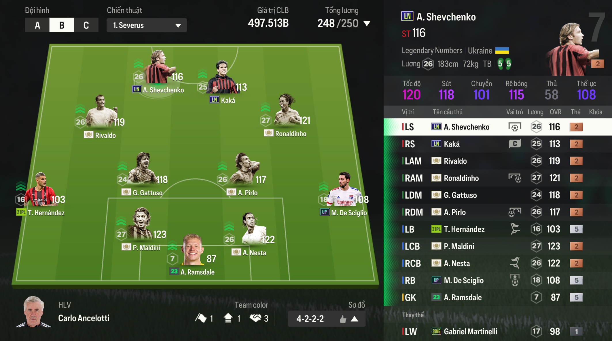 Sơ đồ 4-2-2-2 cơ bản với 2 tiền đạo cắm, 2 tiền vệ công LAM, RAM, 2 tiền vệ phòng ngự và bộ tứ vệ gần như đứng chuẩn vị trí và không có bất kì sự biến tấu nào. Điều này sẽ giúp các HLV áp dụng được nhiều team color cho chiến thuật này thay vì chỉ tập trung vào một dạng chiến thuật với từng cầu thủ đặc trưng.