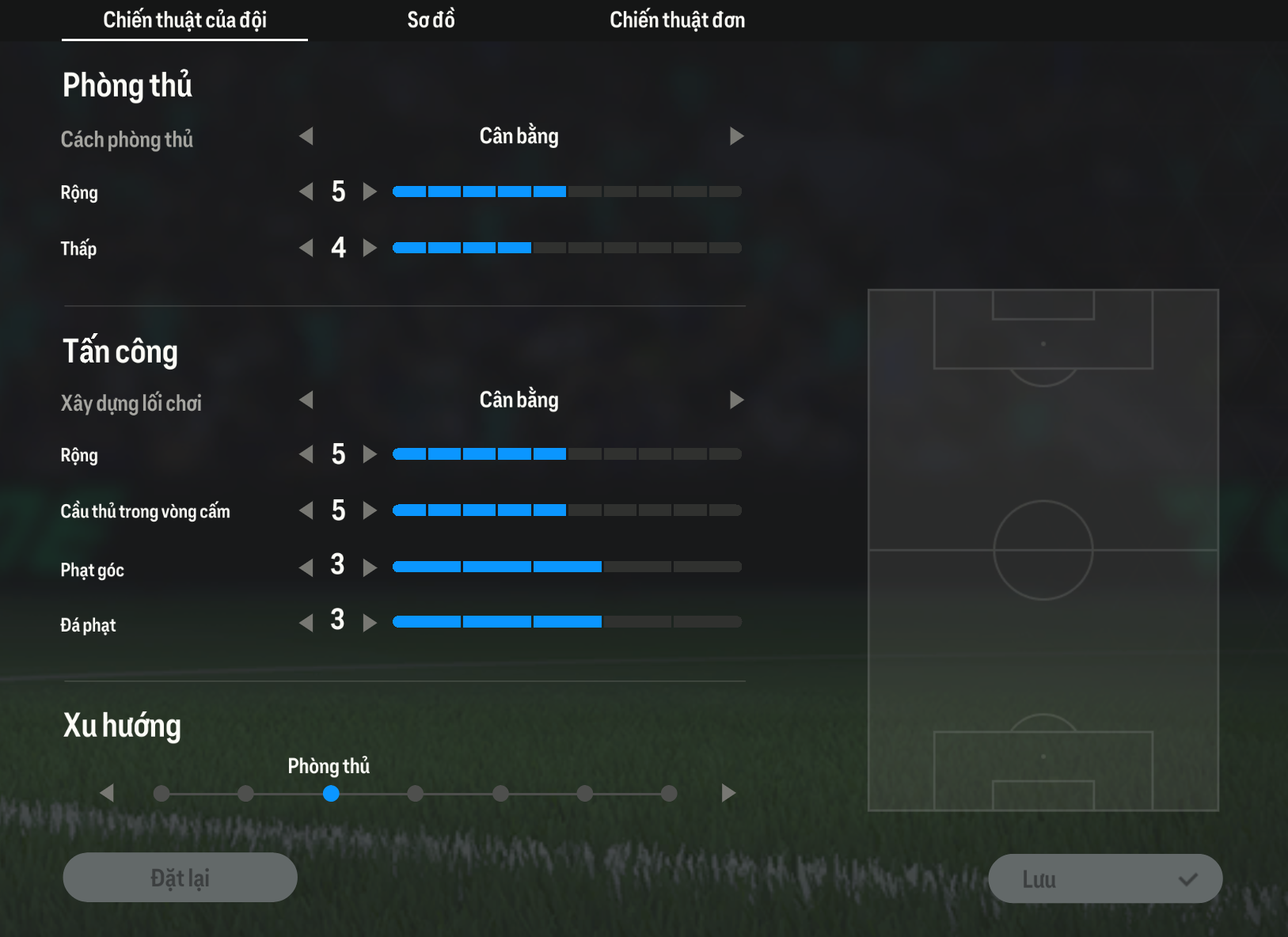 Chiến thuật lối chơi đều để ở trạng thái cân bằng để các HLV có thể dễ dàng chủ động triển khai bóng một cách bình tĩnh, các cầu thủ phòng ngự sẽ lùi hơn và chủ động trong các tình huống phòng ngự hơn rất nhiều.