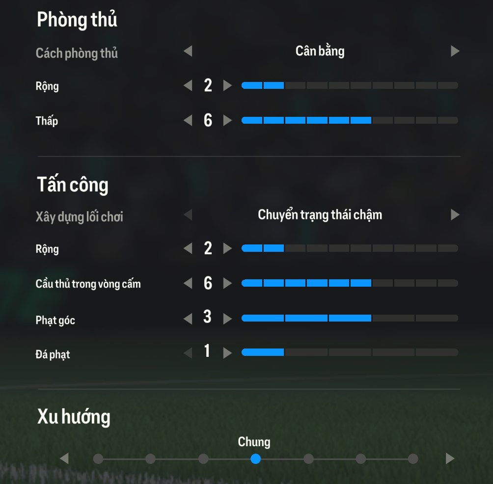 Lối chơi phòng ngự cân bằng đang là xu hướng meta hiện tại. Thiết lập rộng 2 thấp 6 sẽ giúp bo hẹp các cầu thủ về khu vực trung lộ, giảm nguy cơ đối phương bắn phá khung thành từ xa và đảm bảo sự linh hoạt trong đội hình phòng thủ.