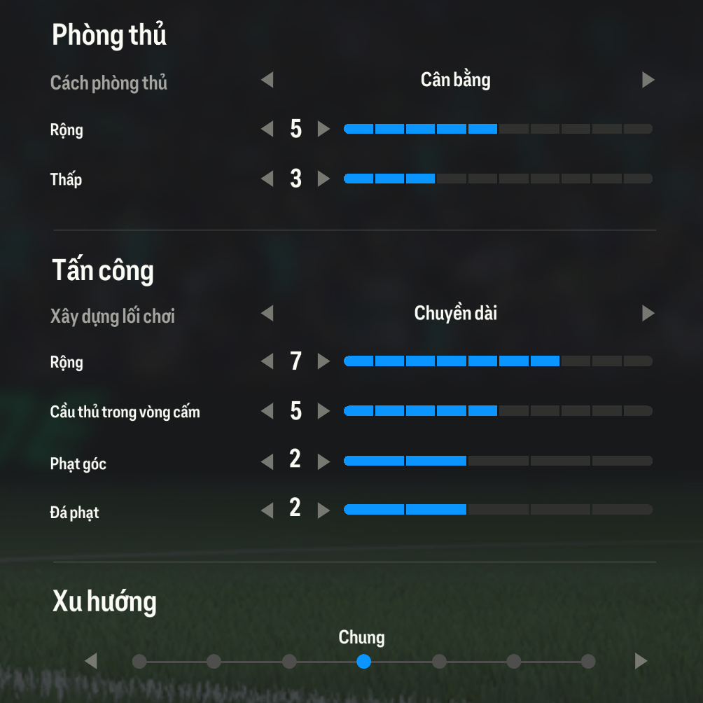 Chiến thuật tấn công đường chuyền dài sẽ tận dụng khả năng chuyền và phối hợp của các cầu thủ tiền vệ cùng AI di chuyển của hàng tiền đạo tạo nên nhiều kết nối ở khâu phối hợp để đưa bóng về phía khung thành đối thủ.