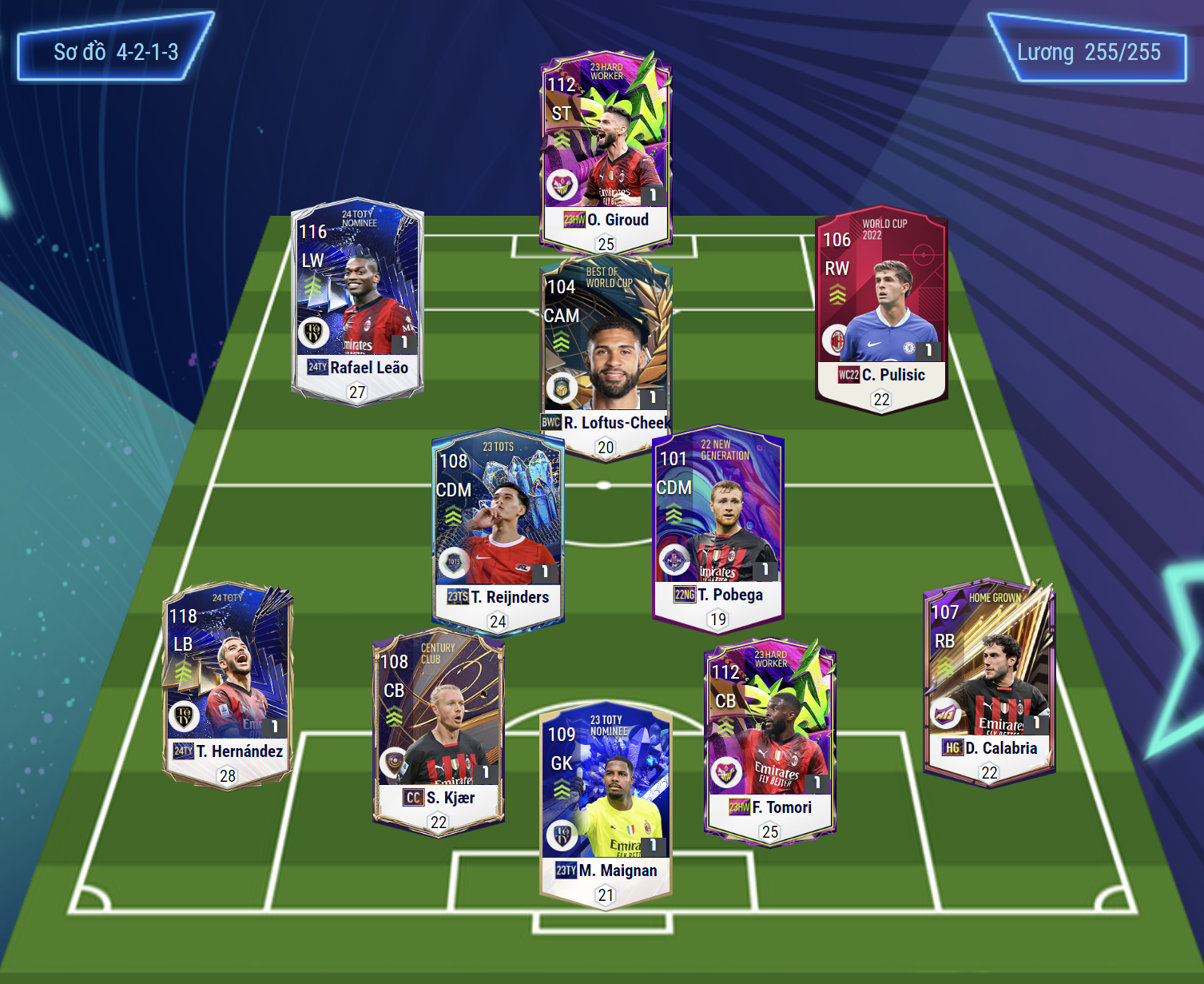 Tiền vệ công được lựa chọn là Loftus-Cheek, tiền vệ có thể hình tốt và kỹ năng tấn công hiệu quả cùng với khả năng tranh chấp và hỗ trợ các đồng đội ổn. 2 tiền vệ phòng ngự là sự góp mặt của Pobega và Reijnders.