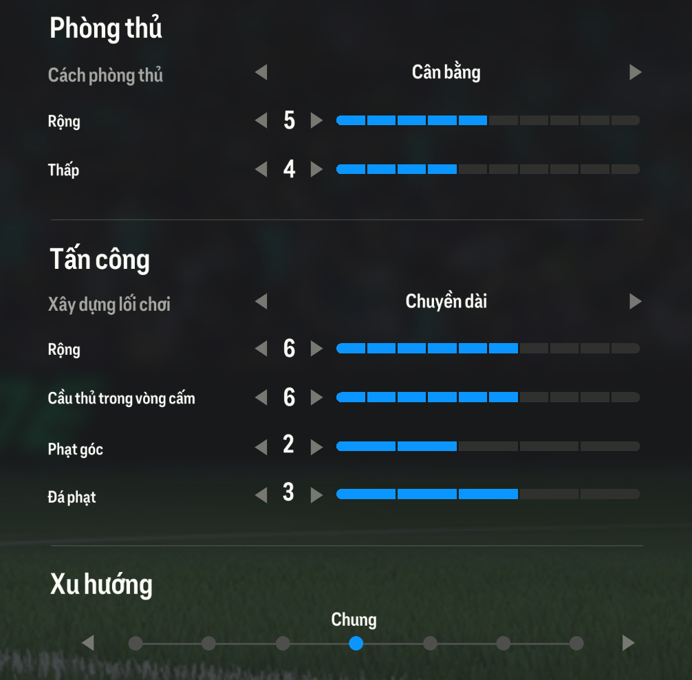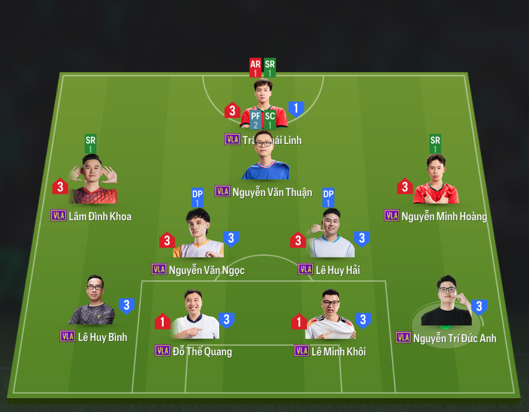 Chiến thuật đơn được áp dụng như hình nhằm tối ưu lối chơi của các cầu thủ.