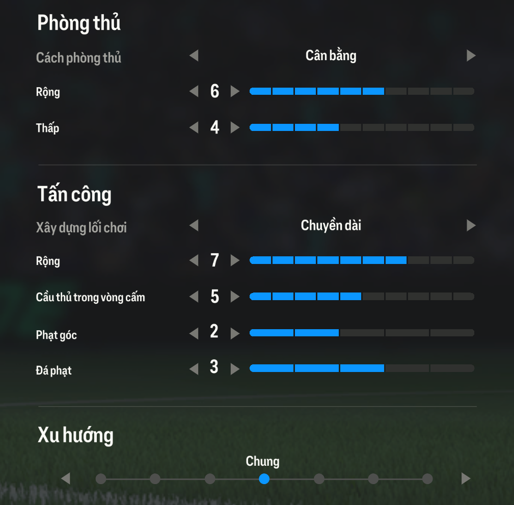 Chiến thuật đơn được lựa chọn như hình bên dưới nhằm tối ưu lối chơi của từng cầu thủ.
