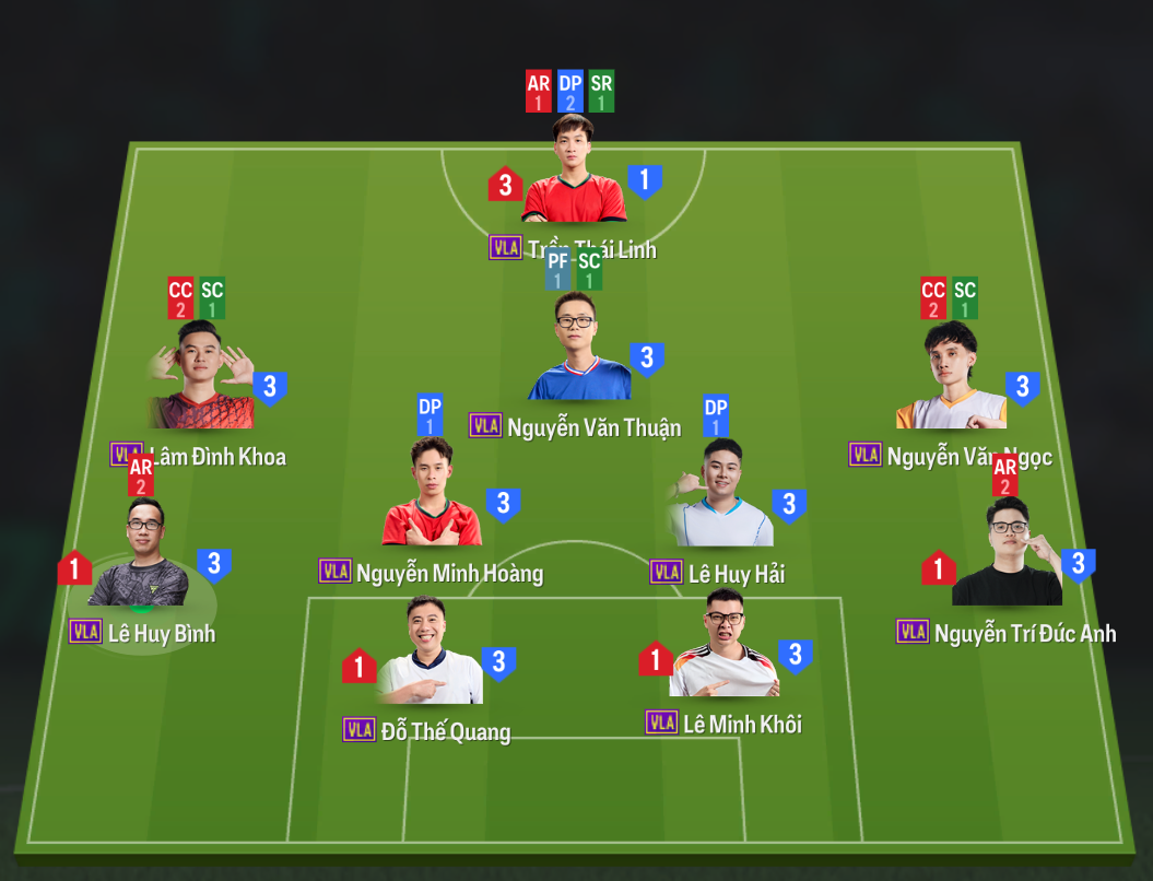 Chiến thuật đơn được thiết lập như hình nhằm tối ưu lối chơi của từng cầu thủ