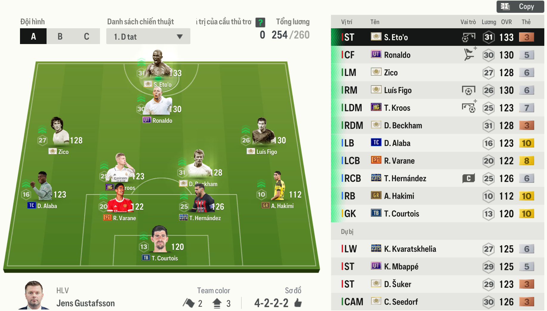 Chiến thuật FC Online : Sơ đồ 4222 ST/CF với team color Real Madrid