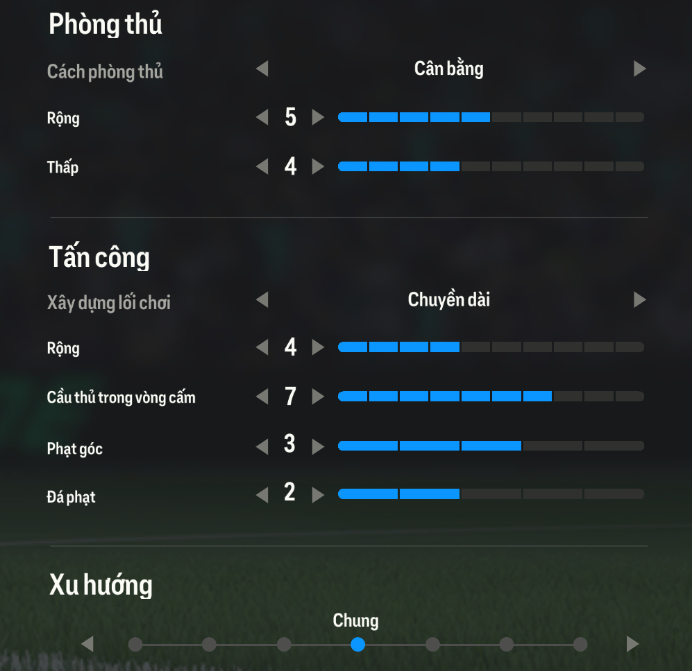Trong khi đó, chiến thuật tấn công chuyền dài sẽ tạo ra điểm nhấn khi tập trung vào cặp đôi tiền vệ công sở hữu khả năng chạy chỗ ấn tượng cùng cặp cánh với bộ chỉ số chuyền chọt lẫn di chuyển thoát cánh thông minh. Cùng với đó, bộ đôi tiền vệ phòng ngự sẽ tối ưu được bộ kỹ năng chuyền vượt tuyến một cách hiệu quả.