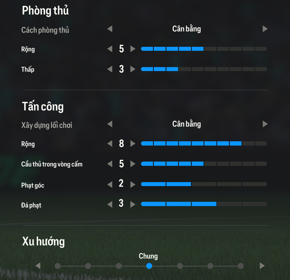 Thiết lập như hình nhằm tối ưu lối chơi của từng cầu thủ trong đội.