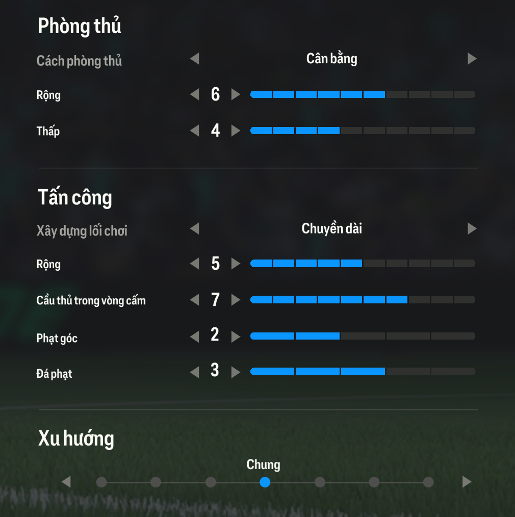 Chiến thuật đơn được thiết lập như hình nhằm tối ưu lối chơi của từng cầu thủ.