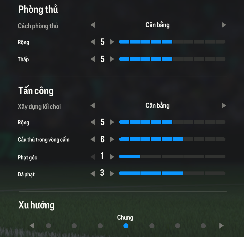 Ở chiến thuật đội, lối chơi phòng ngự cân bằng, xu hướng rộng 5 thấp 5 tạo nên một thế trận phòng ngự cân bằng và sẽ được điều chỉnh trực tiếp trong đội hình tùy thuộc vào những tình huống bóng khác nhau.