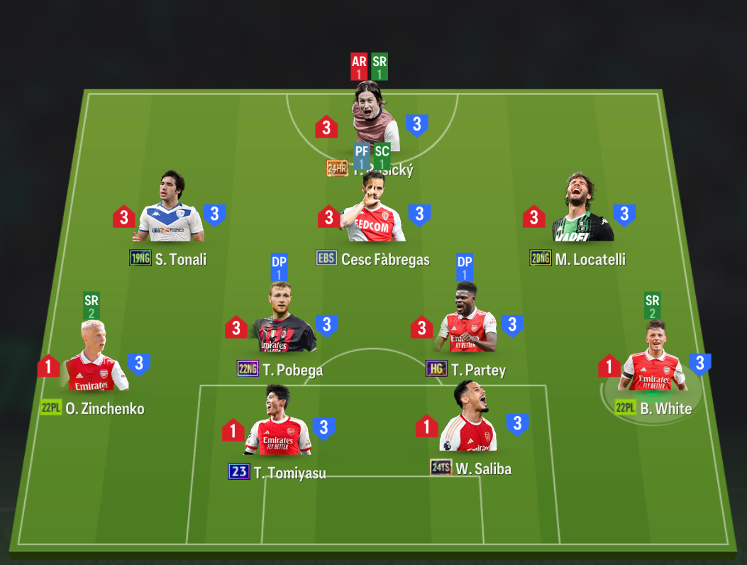 Sơ đồ 4231 được lựa chọn khá cơ bản với vị trí cao nhất trên hàng công là Shevchenko. Hỗ trợ anh ở vị trí tiền vệ công trung tâm là Gullit, một trong những cái tên quốc dân và hiệu quả bậc nhất ở vị trí này. Cặp tiền vệ công lệch cánh lần lượt là De Bruyne và Joe Cole.
