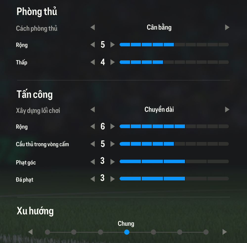 Chiến thuật đơn được thiết lập như hình nhằm tối ưu lối chơi lẫn khả năng vận hành của các cầu thủ.