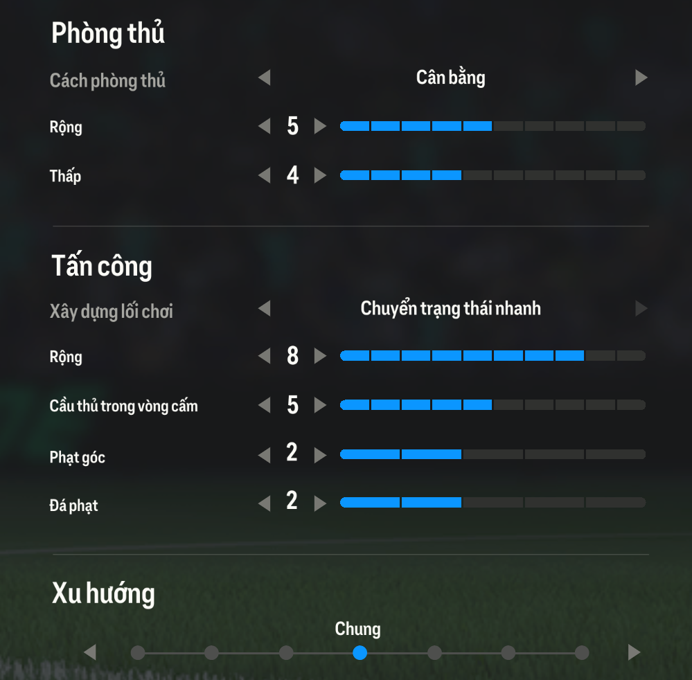 Chiến thuật đơn được thiết lập như hình để tối ưu lối chơi và vận hành hiệu quả.