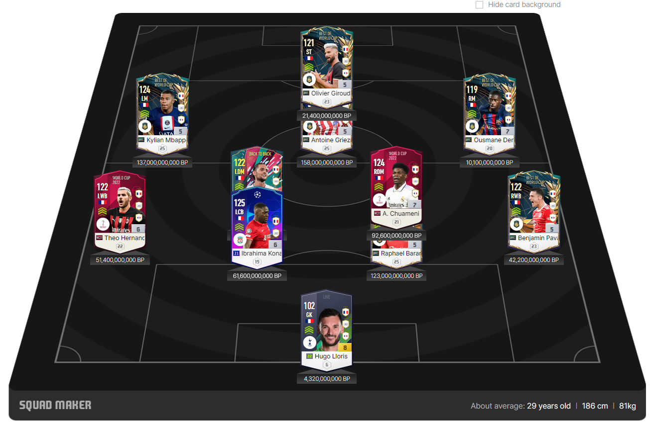 Với đội tuyển Pháp thì mọi chuyện khá dễ dàng khi mà nhân lực của đội tuyển này là cực kỳ đông đảo và dễ xây dựng. Hãy thử tham khảo đội hình dưới đây