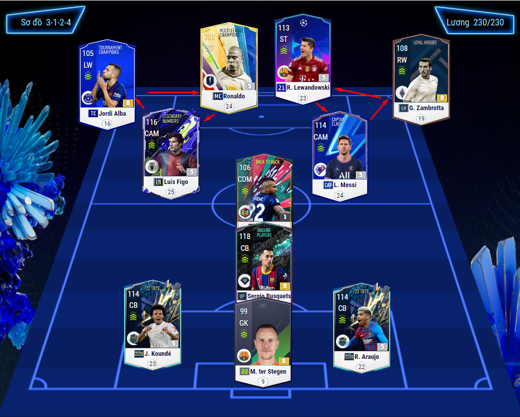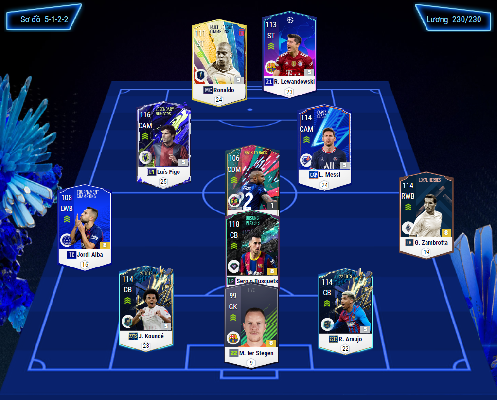 Đã rất lâu rồi chúng tôi không gửi tới các bạn team chiến thuật rank của team Barcelona, bởi đây là team color rất kén người chơi và ít người do hàng thủ của CLB này thuộc vào hàng khó đá nhất nhì hiện nay. Tuy nhiên với sự bổ sung lực lượng một loạt các CB được Nexon đầu tư nâng cấp cho AI thì vấn đề này phần nào cũng được giải quyết. Hôm nay chúng tôi sẽ gửi tới các bạn một sơ đồ phù hợp với meta hiện nay mà được nhiều HLV lựa chọn là 532 dành riêng cho đội hình của gã khổng lồ này.