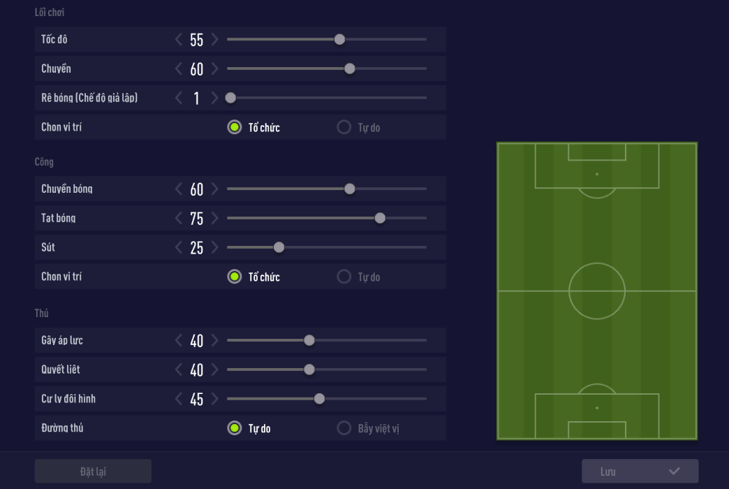 Thiết lập chiến thuật cá nhân minh họa cho team Barcelona ở trên.