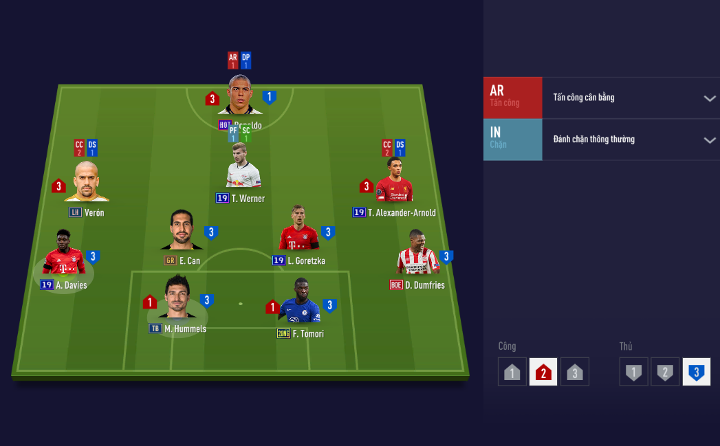 Không Ballack, cặp đôi được HLV này lựa chọn ở vị trí tiền vệ phòng ngự là Effengberg và Goretzka. Hiện tại thì Goretzka đang là CDM hot nhất của meta hiện tại theo đánh giá của cộng đồng bên Hàn Quốc.